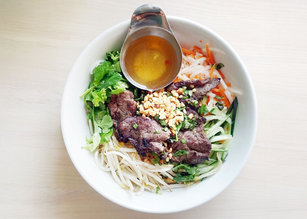 Rice noodle salad with grilled meats, herbs, and nước mắm. Light, fresh, and flavorful.