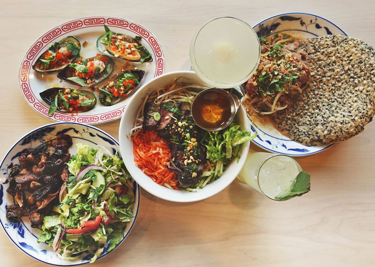 Explore bold favorites like Bò Lúc Lắc (shaken beef), Bò Tái Chanh (Vietnamese Beef Carpaccio), Chèm Chép Nướng (Grilled Mussels), and Cá Thì Là (tilapia with dill and turmeric).